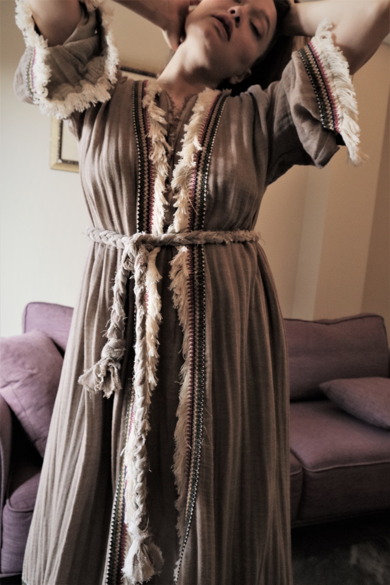 Asya Kaftan is made of Vintahe Muslin Fabric with cotton fringe details 38 USD