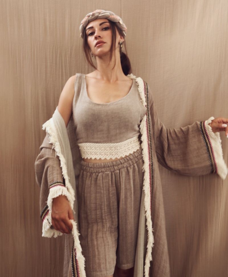 Asya Kaftan is made of Vintahe Muslin Fabric with cotton fringe details 38 USD