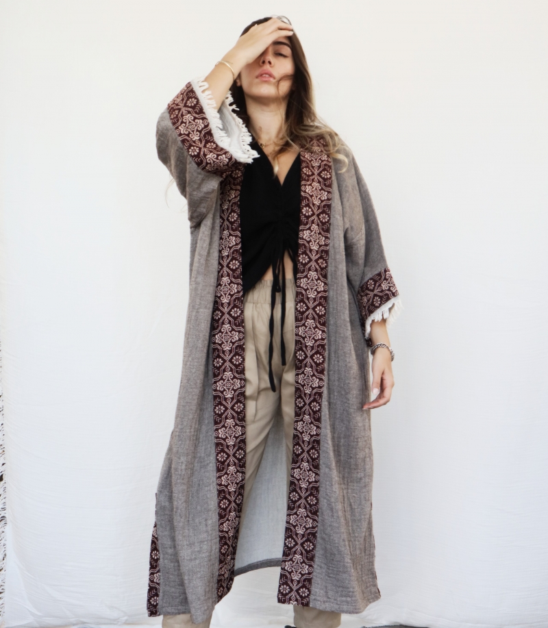 Natural Muslin Kaftan with Kilim Border 35 USD